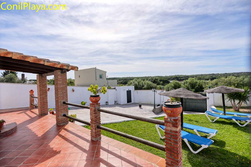 Se trata de un chalet cerca de Los Caños de Meca en alquiler de vacaciones, situado en una parcela de 500 metros, con un amplio jardin y junto al parque natural de Barbate, en San Ambrosio a 5413 metros de la playa de los caños de Meca y a 7 u 8 minutos de la playa de Zahora.