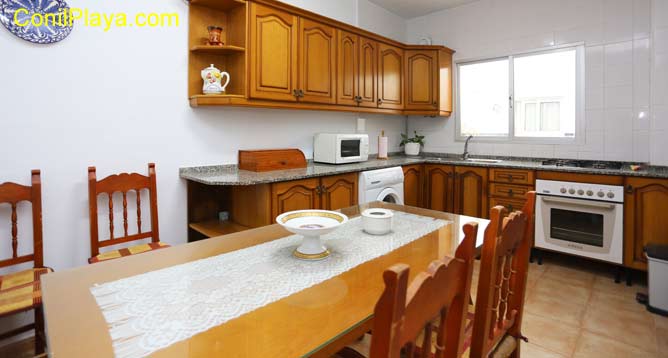 - Cocina - Comedor: Amplia con mesa comedor, equipada con microondas, lavadora, horno