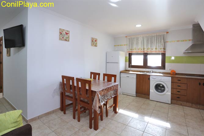 La cocina está totalmente equipada con todo lo necesario para cocinar.