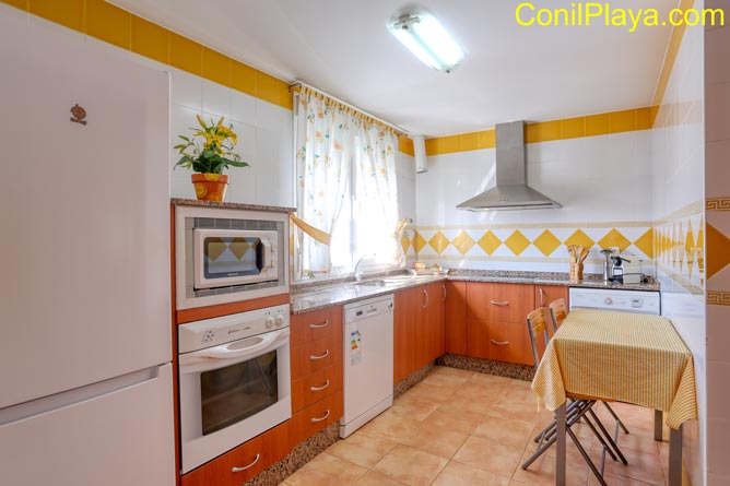 La cocina está completamente equipada y dispone de vitrocerámica, horno, microondas, lavavajillas, despensa, etc.