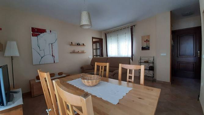 Consta de dos dormitorios, armarios empotrados, salón – comedor con acceso a terraza con tenderete para secar la ropa, cocina completa (cafetera, microondas, etc), un cuarto de baño, y con una gran zona de aparcamiento frente a la casa.