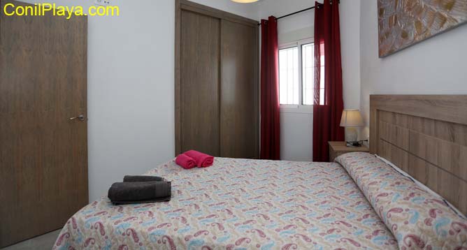 - Interiores: Aire acondicionado, dos dormitorios con cama de matrimonio y armarios, cuarto de baño con ducha, cocina equipada.