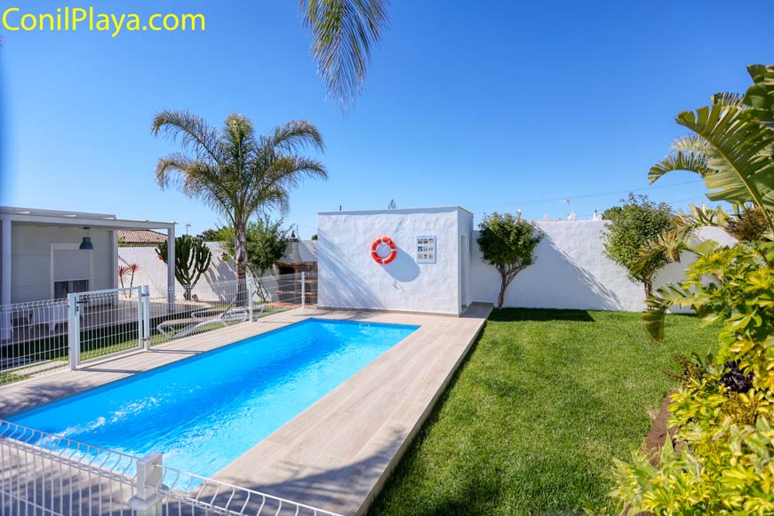 Este alojamiento vacacional, ofrecido directamente por sus dueños, te espera con un amplio jardín, dormitorios con colchones de látex, y una piscina privada. Ideal para familias con niños, ubicado en una zona tranquila y bien comunicada, cerca de las hermosas playas gaditanas. Con comodidades modernas como wifi y aire acondicionado, garantiza una estancia confortable y relajada.