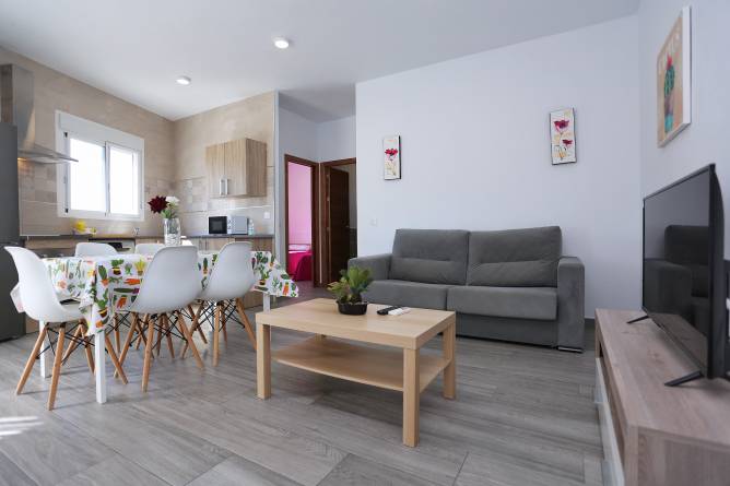 Consta de 2 dormitorios con armarios, un amplio salón - comedor, cocina completamente equipada y cuarto de baño.