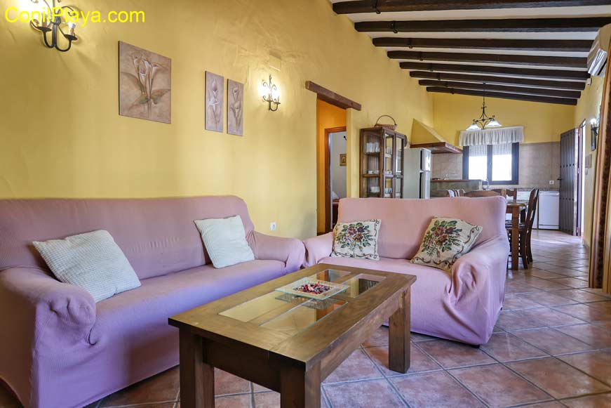 El salón - comedor es amplio y cuenta con aire acondicionado. Junto al salón se encuentra la cocina y el comedor, estando ésta última dotada de todo lo necesario para cocinar y de diversos electrodomésticos. La cocina dispone de microondas, tostadora, batidora, exprimidor, cafetera, placa vitrocerámica, etc.