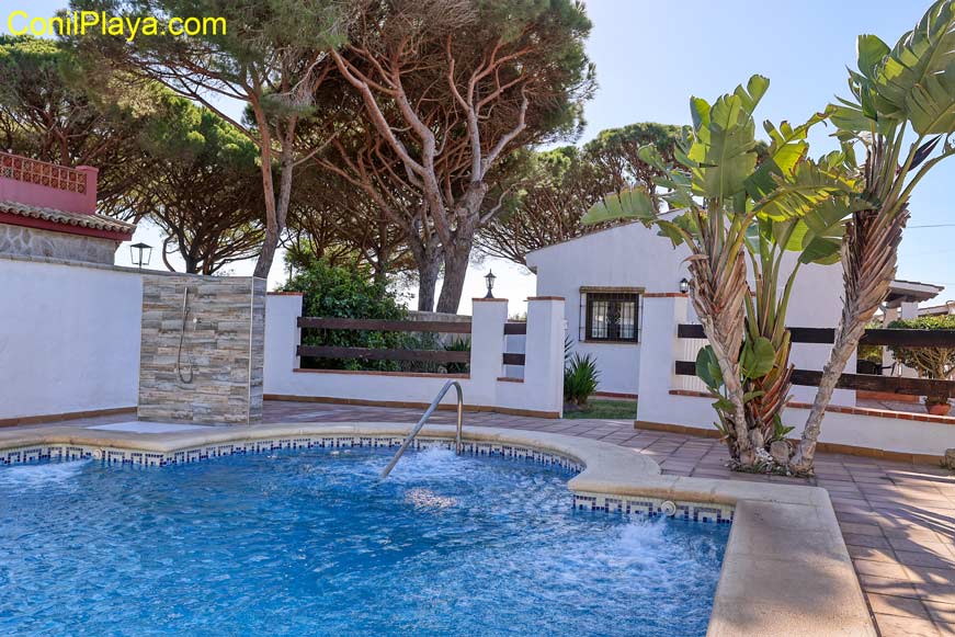 Alquiler de 3 chalets juntos en Conil de 2 dormitorios y capacidad para 4 personas cada uno, situado en un complejo de 3 casas con piscina para vacaciones, es ideal para varias familias con niños o varios matrimonios o parejas. Tiene capacidad para alojar hasta 12 personas.