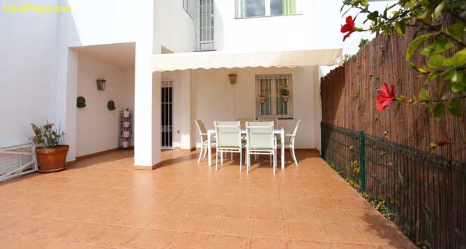 Alquiler de chalet adosado en Conil con piscina en urbanización cerrada de nueva construcción a tres minutos en coche de la playa de la Fontanilla.