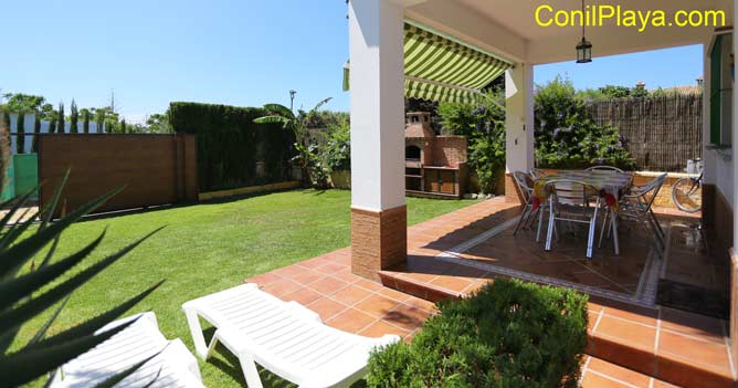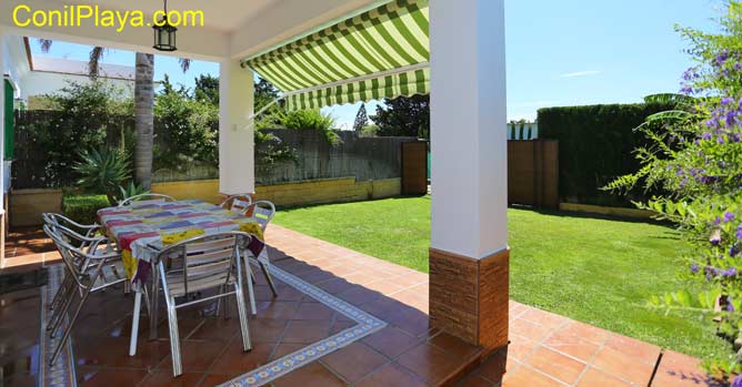 Dispone de porche con mucha sombra y con toldo, estupendo para realizar barbacoas en las noches de verano de El Palmar.