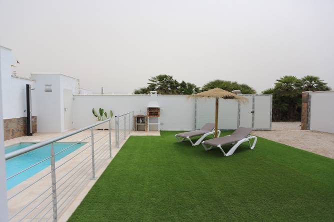 Se trata de un estupendo chalet en El Palmar con piscina privada vallada situado a 2-3 minutos andando de la playa de El Palmar de Vejer, en una zona muy tranquila y muy cerca de la playa de La Mangueta (Zahora), con carril de acceso privado.