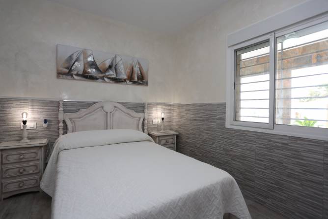La casa es de nueva construcción, con mobiliario funcional y moderno, con todo nuevo. Consta de 2 dormitorios, uno con cama de matrimonio y otro con 2 camas individuales, ambos cuentan con ventilador de techo y armario.