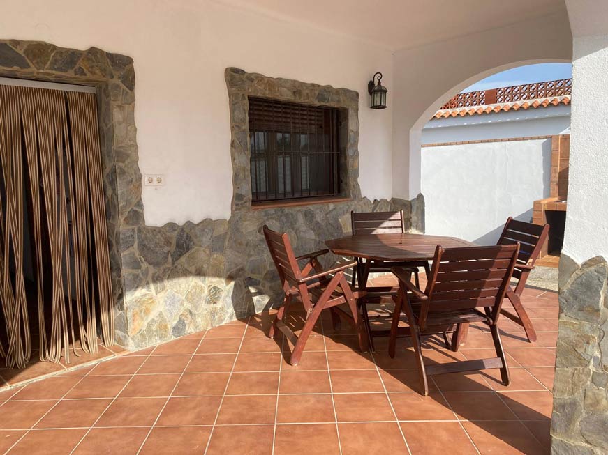 Consta de salón - comedor con chimenea, 3 dormitorios con armarios , cuarto de baño con bañera, jardín con césped y ducha exterior, porche y barbacoa.