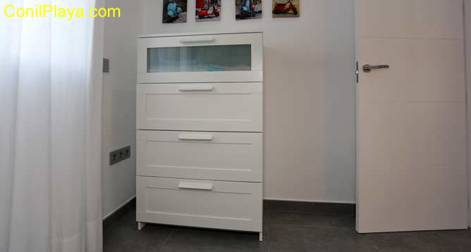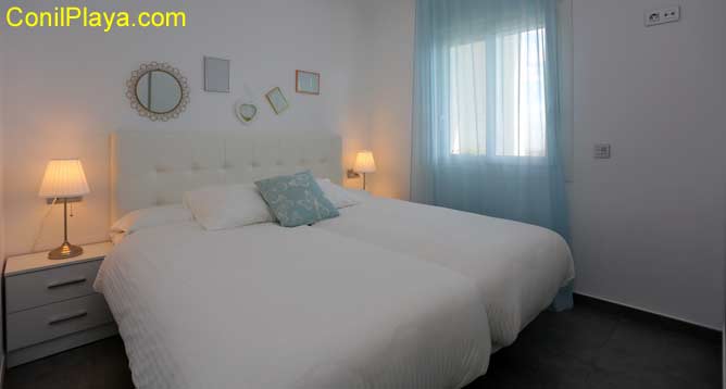 Dispone de 3 dormitorios, uno con cama de matrimonio y puff-cama plegable, otro con 2 camas literas y una cama supletoria inferior y otro con 2 camas individuales. El dormitorio principal dispone de un amplio armario - vestidor, el de las camas literas de una cómoda y el de las 2 camas individuales de un armario empotrado.